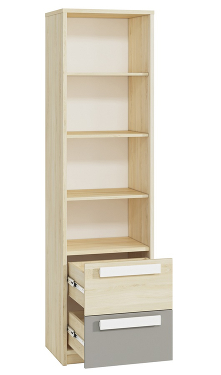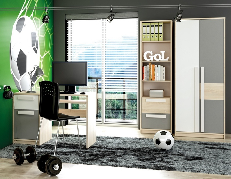 Sestava do dětského pokoje v moderním provedení. Korpus je vyroben z kvalitní desky LTD hraněné ABS páskou v barvě buk fjord, dvířka jsou vyrobeny z desky LTD v kombinaci barev buk fjord/bílá/šedá. Sestava se skládá z těchto položek (Š x V x H cm) – šatní skříň (80 × 199 × 55 cm),regál se... více informací o zboží