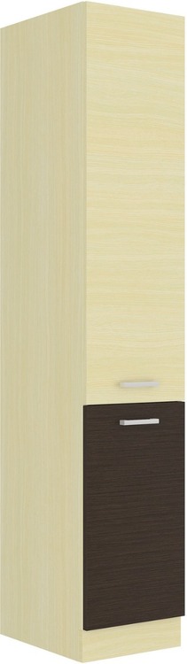Potravinová skříň – spíže CHAMONIX II vyrobená z kvalitního lamina. Korpus i sokl ( 10 cm ) jsou v barvě dub ferrara a spodní dvířka v barvě dub tmavé legno a vrchní dvířka v barvě dub ferrara. Rozměry skříňky – šířka 40 cm, výška 210 cm, hloubka 57 cm. Skříň má pravé otvírání dvířek. Úchyty jsou z plastu. V naší nabídce naleznete další výběr skříněk k sestavení celé kuchyně.CASA 87003