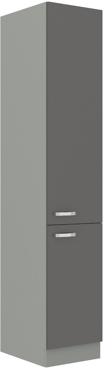 Potravinová skříň – spíže GREY vyrobená z kvalitního lamina a MDF. Korpus i sokl ( 10 cm ) jsou v barvě šedá a dvířka v barvě grey šedá v lesku. Rozměry skříňky – šířka 40 cm, výška 210 cm, hloubka 57 cm. Skříň má pravé otvírání dvířek. Úchyty jsou z kovu. V naší nabídce naleznete další výběr... více informací o zboží