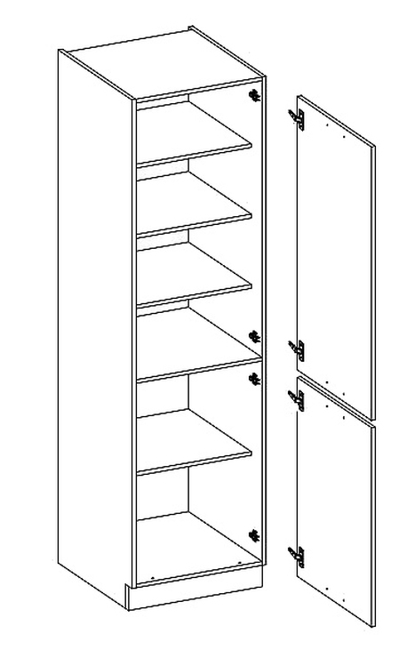 Potravinová skříň – spíže KARMEN vyrobená z kvalitního lamina a MDF. Korpus i sokl ( 10 cm ) jsou v barvě šedá a dvířka v barvě karmen krémová v lesku. Rozměry skříňky – šířka 60 cm, výška 210 cm, hloubka 57 cm. Skříň má pravé otvírání dvířek. Úchyty jsou z kovu. V naší nabídce naleznete další... více informací o zboží