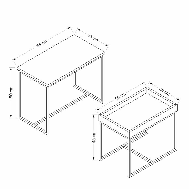 Sada konferenčních stolků je vyrobena z kvalitních materiálů, které zajišťují dlouhou životnost a snadnou údržbu. Praktický design umožňuje jejich variabilní využití – větší stolek pro hlavní plochu a menší stolek s okraji například na odkládání drobností. Pořiďte si konferenční stolek a užijte si moderní a funkční doplněk pro váš obývací pokoj!