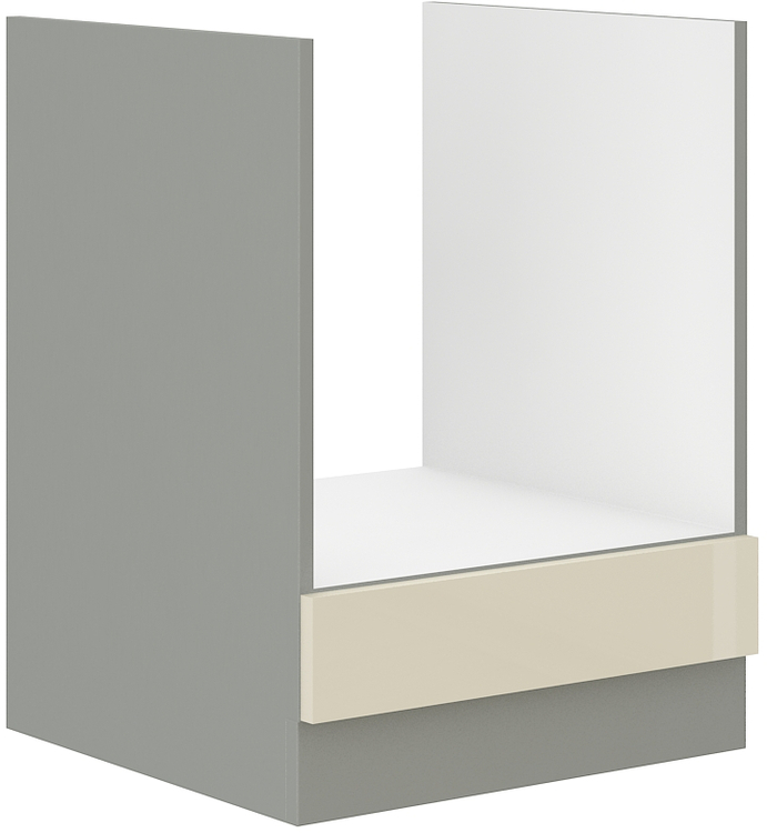 Dolní skříňka na vestavnou troubu KARMEN vyrobená z kvalitního lamina MDF. Korpus i sokl ( 10 cm ) jsou v barvě šedá a dvířka v barvě karmen krémová v lesku. Rozměry skříňky – šířka 60 cm, výška 82 cm, hloubka 52 cm. V naší nabídce naleznete další výběr skříněk k sestavení celé kuchyně.CASA... více informací o zboží