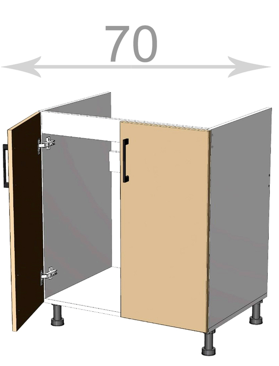 Dolní dřezová skříňka, šířka 70 cm, 2 dvířka, MDF krémová lesk, bílý korpus. Náleží do kuchyňské sektorové řady Kaiser. Skříňka je konstrukčně určena pod dřez. Moderní, exkluzivní, ale cenově dostupný. To jsou hlavní přednosti kuchyňského sektoru Kaiser. MDF dvířka jsou potažena HPL vysokotlakým laminátem a mají plastovou hranu ve shodné barvě, což zaručuje vysokou odolnost a výdrž. Nově je možné si vybrat z více než 10ti barev dvířek jak v lesku tak iv matné úpravě. Úchytka je na výběr, ostatní kování je v ceně. Na výběr je mnoho skříněk, ze kterých je možné si vytvořit vlastní sestavu podle potřeby. Pracovní deska a soklová lišta jsou na výběr a objednávají se zvlášť. Nožky dolních skříněk mají výšku 10 cm a jsou v ceně skříňky. Nabízíme také nožky 15 cm. Úchytky ke skříňce se objednávají zvlášť. Na výběr je více než 10 typů úchytek, takže lze vybrat dle vašeho vkusu. Dvířka jsou již předvrtána na rozteč 128 mm.