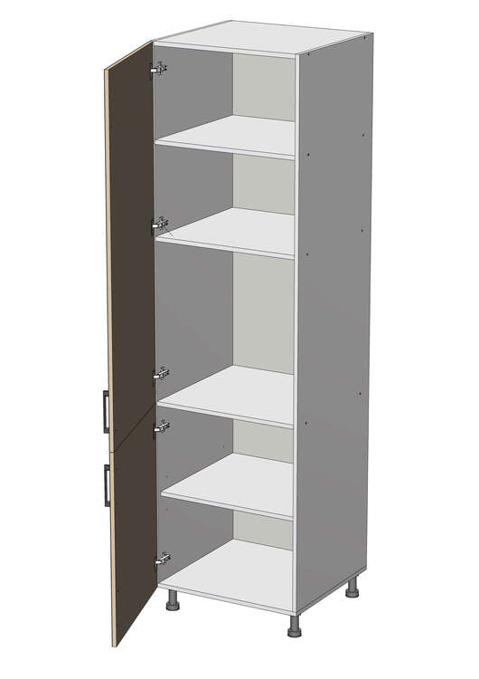 Potravinová skříň, šířka 60 cm, 2 dvířka bílý mat, grafit korpus.Moderní levný kuchyňský sektor Modest je vyroben z odolného LTD. V ceně je příslušné kování. Z jednotlivých skříněk je možno si vyskládat kuchyni na míru dle potřeb. Pracovní deska a soklová lišta jsou na výběr a objednávají se... více informací o zboží