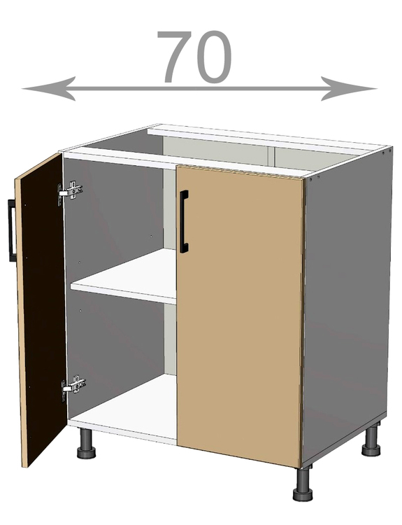 Dolní skříňka, šířka 70 cm, 2 dvířka dub clubhouse, grafit korpus. Náleží do kuchyňské sektorové řady Horizon.Cenově atraktivní kuchyňský sektor Horizon ve vintage stylu je vyroben z odolného LTD. Úchytka je na výběr, ostatní kování je v ceně. Kuchyně Horizon je výjimečná horizontálním uložením kresby dřeva na dvířkách. Z jednotlivých skříněk je možno poskládat si sestavu na míru své kuchyně. Pracovní deska a soklová lišta jsou na výběr a objednávají se zvlášť. Nožky dolních skříněk mají výšku 10 cm a jsou v ceně skříňky. Nabízíme také nožky 15 cm. Úchytky ke skříňce se objednávají zvlášť. Na výběr je více než 10 typů úchytek, takže lze vybrat dle vašeho vkusu. Dvířka jsou již předvrtána na rozteč 128 mm.