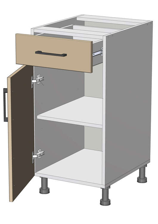 Dolní skříňka se šuplíkem, šířka 40 cm, 1 šuplík, 1 dvířka dub Sonoma, grafit korpus. Náleží do kuchyňské sektorové řady Modena. Účelně řešená skříňka s jedním šuplíkem vhodným pro příbory a dvířky pod tímto šuplíkem. Moderní levný kuchyňský sektor Modest je vyroben z odolného LTD. V ceně je příslušné kování. Z jednotlivých skříněk je možno si vyskládat kuchyni na míru dle potřeb. Pracovní deska a soklová lišta jsou na výběr a objednávají se zvlášť. Nožky dolních skříněk mají výšku 10 cm a jsou v ceně skříňky. Nabízíme také nožky 15 cm. Úchytky ke skříňce se objednávají zvlášť. Na výběr je více než 10 typů úchytek, takže lze vybrat dle vašeho vkusu. Dvířka jsou již předvrtána na rozteč 128 mm.