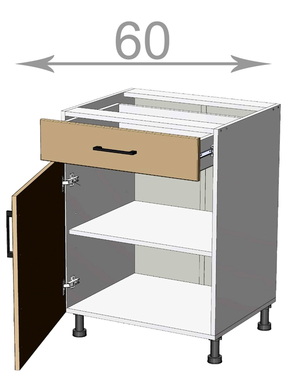 Dolní skříňka se šuplíkem, šířka 60 cm, 1 šuplík, 1 dvířka, MDF bílý mat, bílý korpus. Náleží do kuchyňské sektorové řady Kaiser. Účelně řešená skříňka s jedním šuplíkem vhodným pro příbory a dvířky pod tímto šuplíkem. Moderní, exkluzivní, ale cenově dostupný. To jsou hlavní přednosti... více informací o zboží