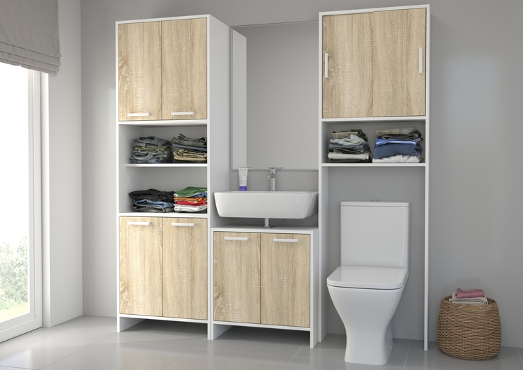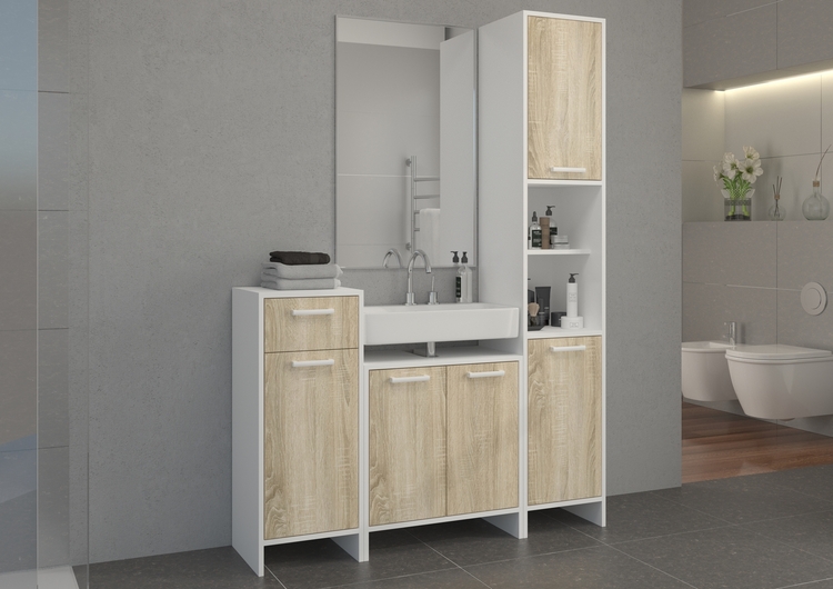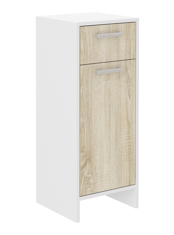 Dolní skříňka jednodvěřová s 1 praktickou zásuvkou, stylová a zároveň vhodná do moderních interiérů. Korpus i dvířka jsou vyrobeny z desky LTD 16 mm potažené PVC folií v barvě bílá/dvířka v dub sonoma. Zadní strana je ze sololitu. Úchyty jsou plastové. Naleznete zde dostatek prvků, ze kterých si sestavíte koupelnu dle Vašich představ. Dodáváme v demontovaném stavu.CASA 87026