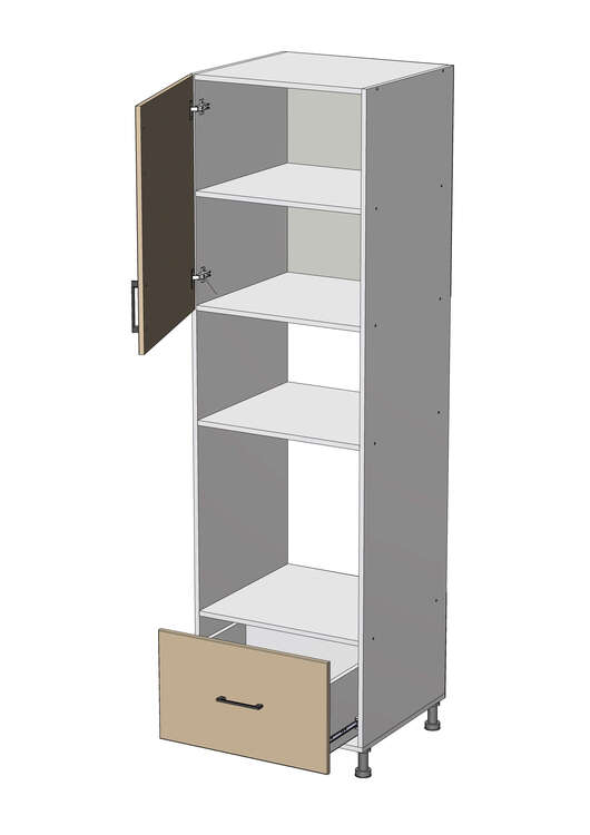 Vysoká potravinová skříň na vestavnou troubu a mikrovlnku, šířka 60 cm, 1 šuplík, 1 dvířka antracit, grafit korpus. Náleží do kuchyňské sektorové řady Modena. Vysoká skříň pro umístění vestavné trouby a mirkovlnky tak, aby nebylo nutné se k nim ohýbat. Moderní levný kuchyňský sektor Modest je... více informací o zboží