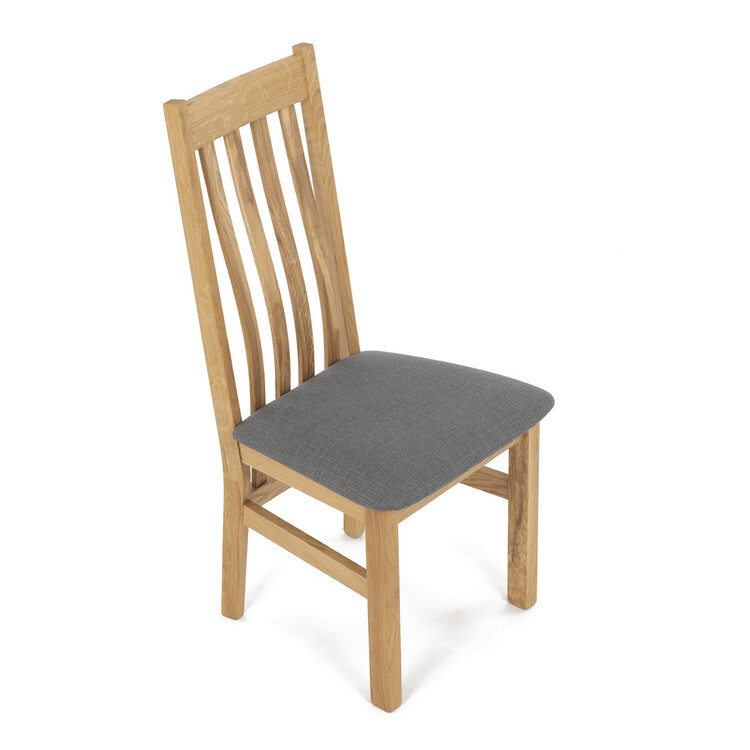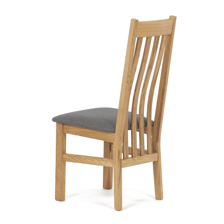 Jídelní židle s vysokým opěrákem je vyrobena z masivního dubového dřeva, které zajišťuje pevnost a stabilitu. Opěrák je ergonomicky tvarovaný svislými lamelami, které podporují správné držení těla při sezení. Sedák je čalouněný šedou látkou, která nabízí příjemný povrch a snadnou údržbu.... více informací o zboží