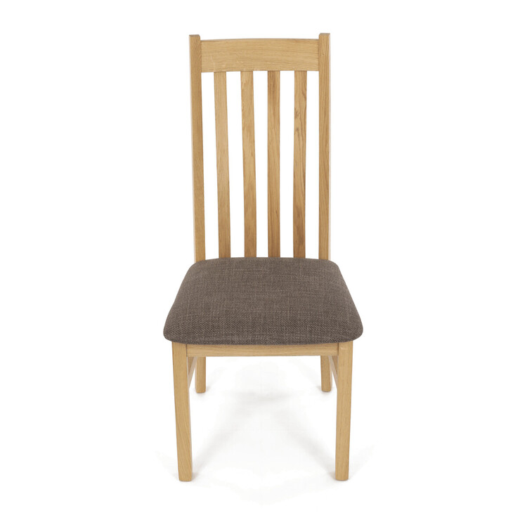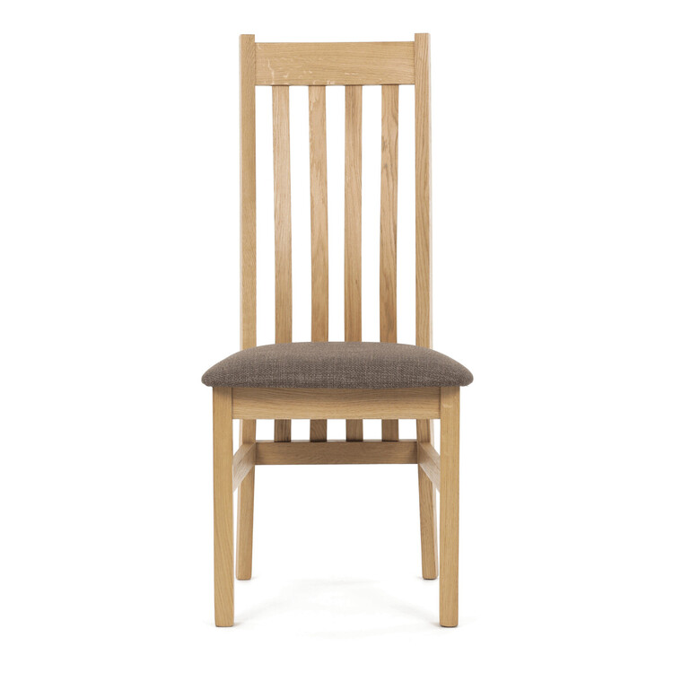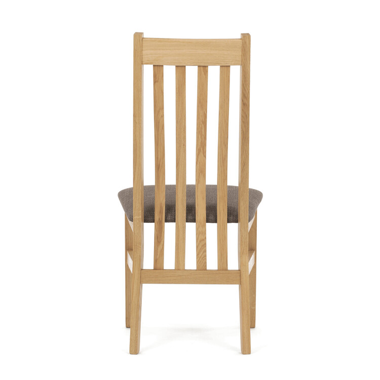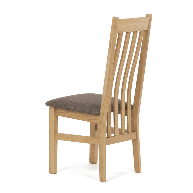 Jídelní židle z masivního dubu nabízí pevnou a stabilní konstrukci, která je navržena pro dlouhodobé používání. Vysoce ergonomicky tvarovaný opěrák svislých lamel poskytuje pohodlnou oporu zad a přispívá k lepšímu držení těla při sezení. Sedák je čalouněný hnědou látkou, která zajišťuje... více informací o zboží