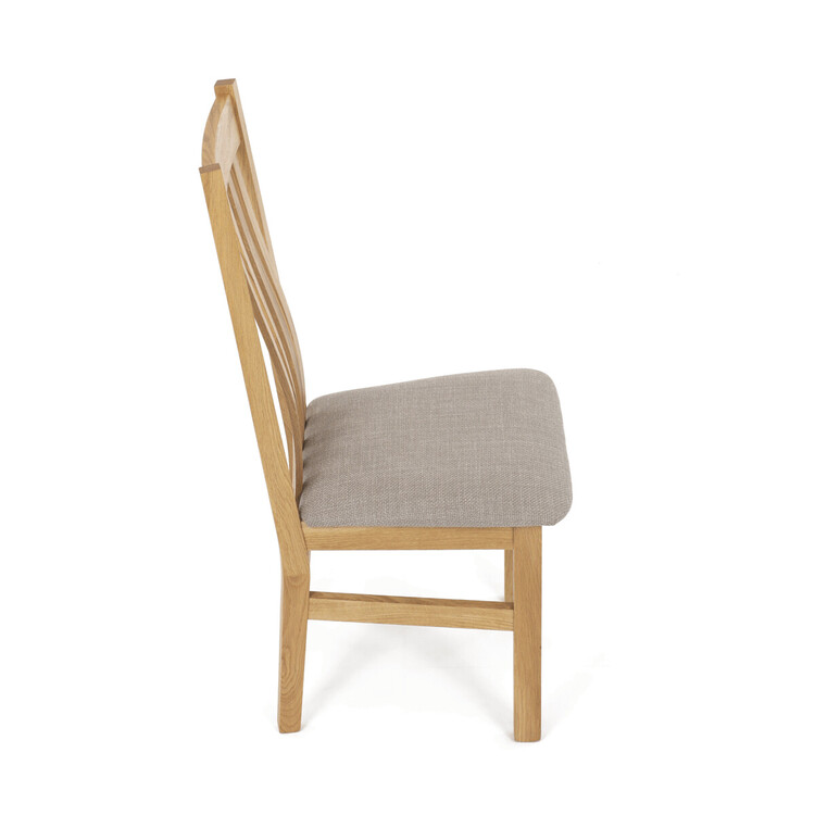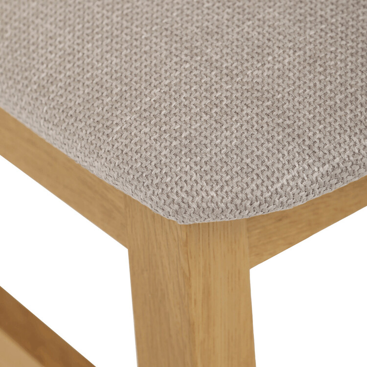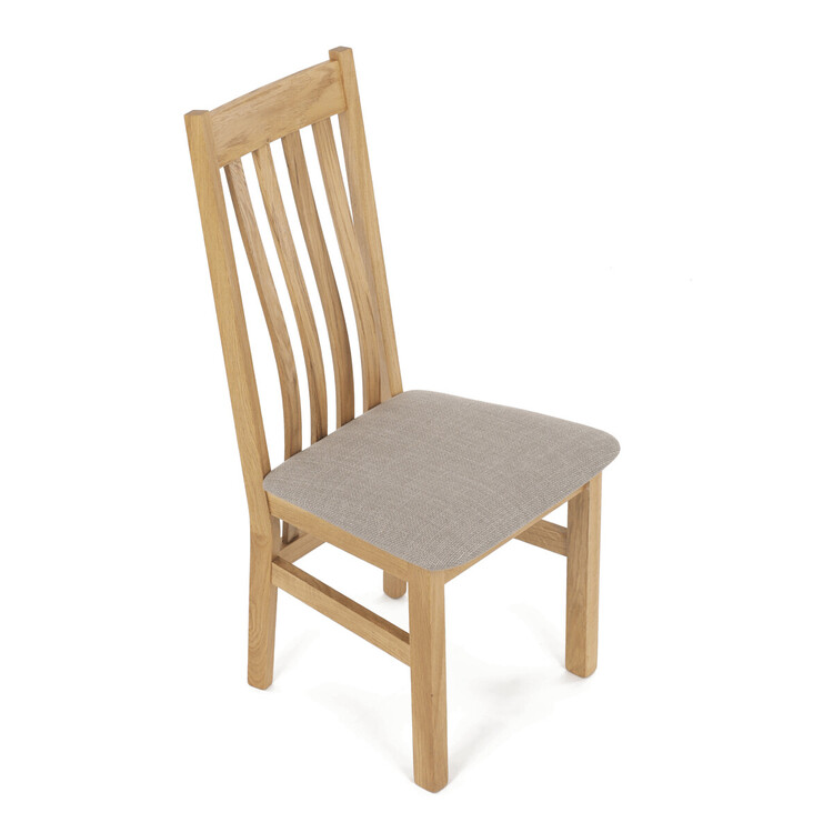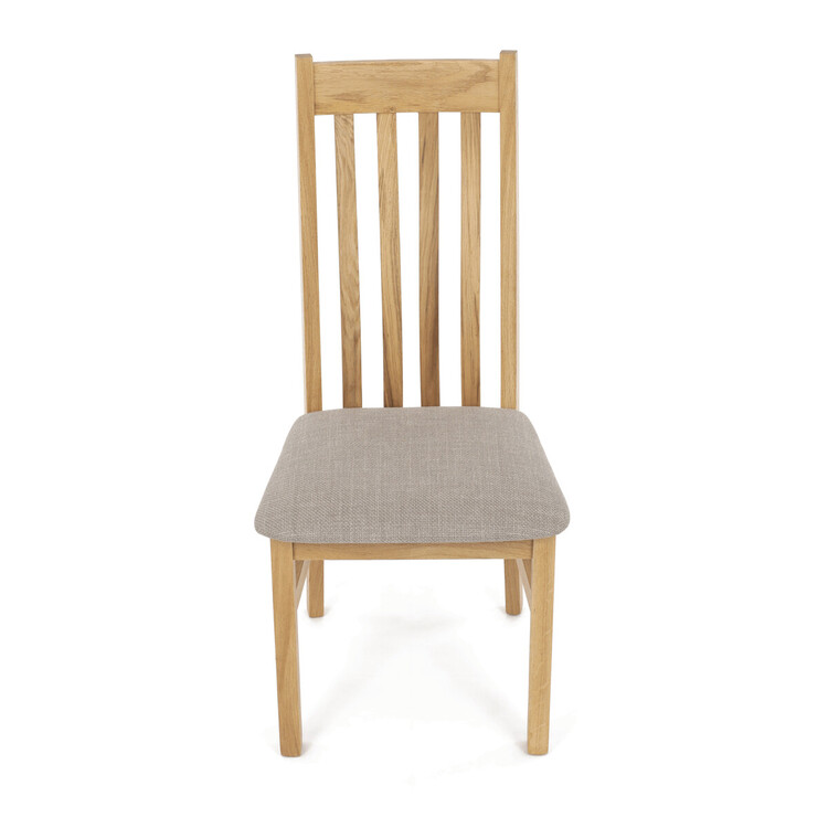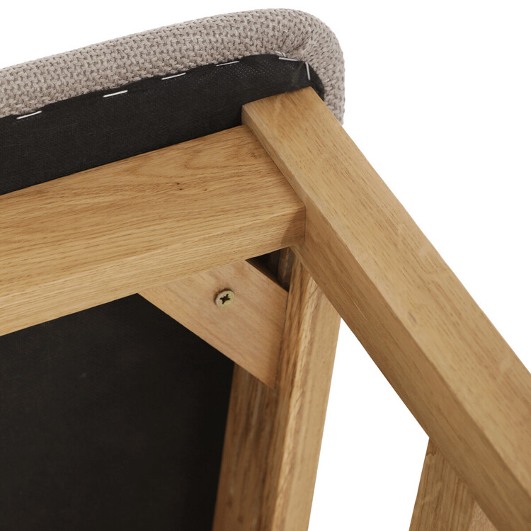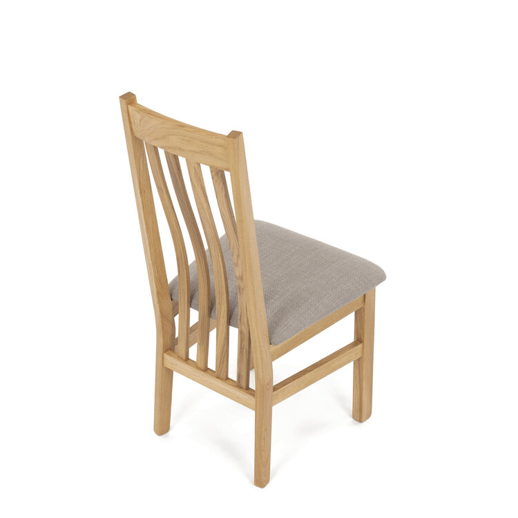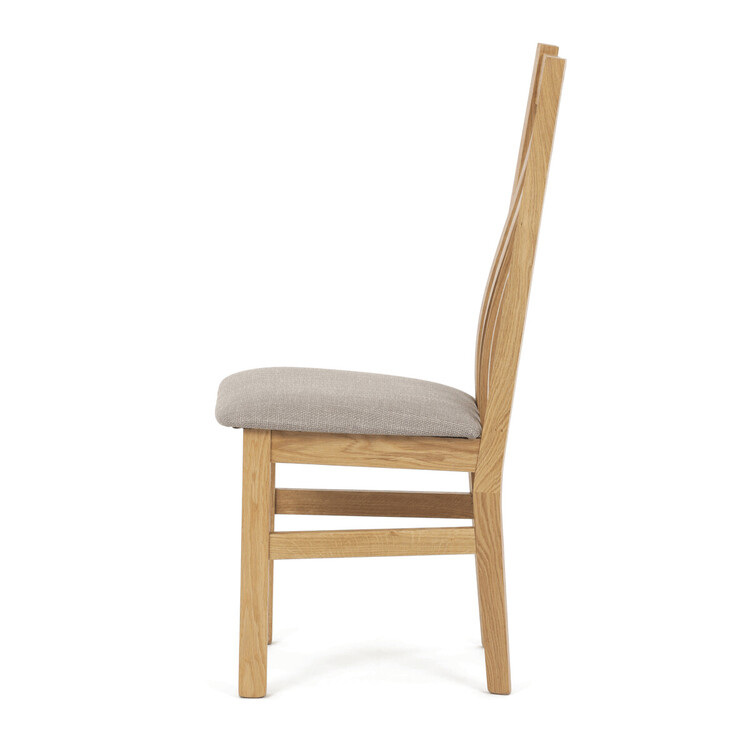 Jídelní židle s označením C-2100 CRM2 je vyrobena z masivního dubového dřeva, které zajišťuje pevnost a dlouhou životnost. Vysoký opěrák je ergonomicky tvarovaný pro pohodlnou oporu zad během sezení, zatímco sedák je čalouněný béžovou látkou příjemnou na dotek. Masivní konstrukce nohou a rámu garantuje stabilitu a odolnost při každodenním používání. Židle nemá područky ani otočný mechanismus, což ji činí ideální volbou pro jídelní prostory s klasickým designem. Přírodní odstíny dřeva v kombinaci s neutrálním potahem umožňují snadné začlenění do různých interiérů.
