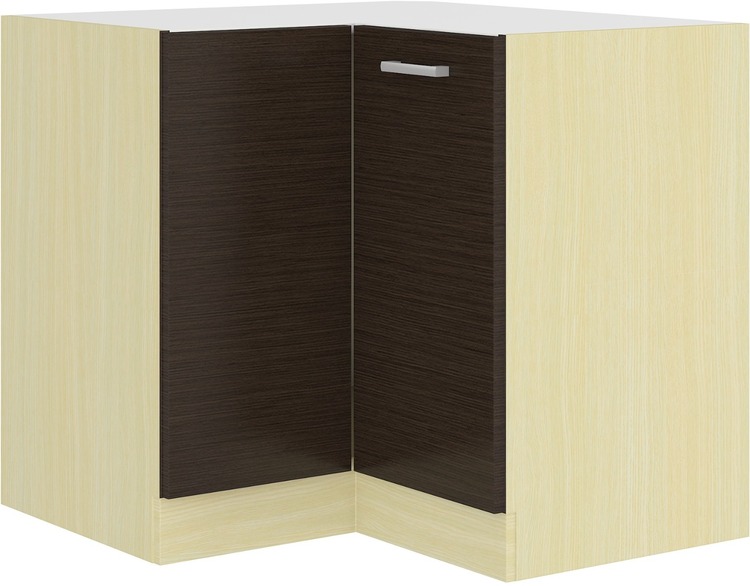 Dolní skříňka rohová CHAMONIX II vyrobená z kvalitního lamina. Korpus i sokl ( 10 cm ) jsou v barvě dub ferrara a dvířka v barvě dub tmavé legno. Rozměry skříňky – šířka 89 × 89 cm, výška 82 cm, hloubka 52 cm. Pracovní deska není v ceně. Úchyty jsou z plastu. Dvířka mají levé otvírání. V naší nabídce naleznete další výběr skříněk k sestavení celé kuchyně.CASA 87003