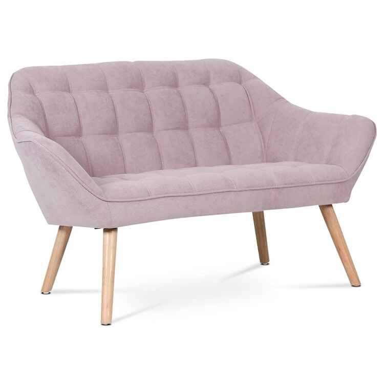 Dvoumístná sedačka s potahem ze starorůžové látky nabízí příjemný komfort a stylový vzhled díky designovému prošití na opěradle a sedáku. Pevné nohy z masivního kaučukovníku zajišťují stabilitu a dlouhou životnost, přičemž jejich přírodní dřevěný odstín kontrastuje s jemným tónem látky. Sedací část je vyplněna kvalitní pěnou, která podporuje pohodlné sezení. Kompaktní rozměry sedačky ji předurčují pro menší obývací prostory či kanceláře, kde vynikne jako elegantní a funkční prvek interiéru.