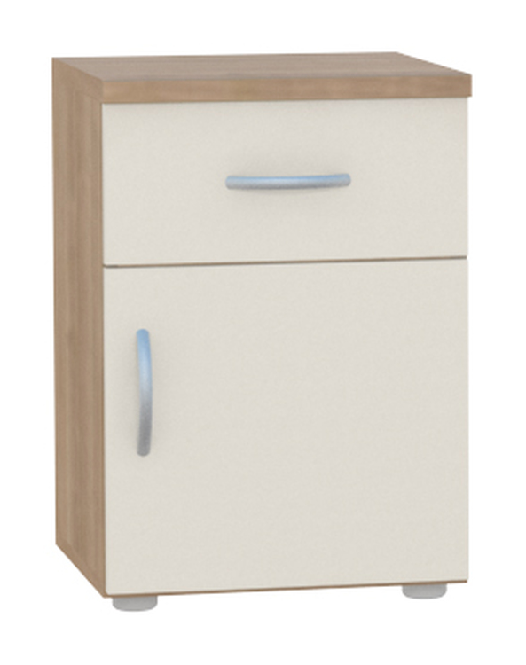 Skříňka na nožkách s dvířky a šuplíkem. Možnost výběru barvy a úchytek viz vzorník. Barvy je možné vzájemně kombinovat dle Vašich představ, požadavek na kombinaci barev je nutné uvést do poznámky v objednávce. Možnost výběru levého nebo pravého provedení. Skříňka je zobrazena v pravém provedení. Skříňka má další rozměrové varianty viz varianty zboží. Dodáváno ve smontovaném stavu.