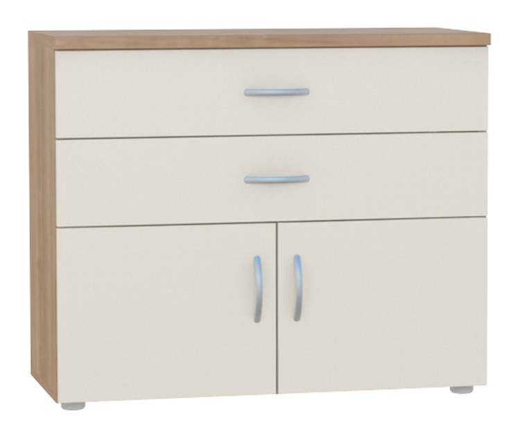 Skříňka na nožkách s dvířky a šuplíky. Možnost výběru barvy a úchytek viz vzorník. Barvy je možné vzájemně kombinovat dle Vašich představ, požadavek na kombinaci barev je nutné uvést do poznámky v objednávce. Skříňka má další rozměrové varianty viz varianty zboží. Dodáváno ve smontovaném stavu.