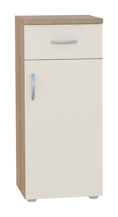 Skříňka na nožkách s dvířky, nastavitelnou policí a šuplíkem. Možnost výběru barvy a úchytek viz vzorník. Barvy je možné vzájemně kombinovat dle Vašich představ, požadavek na kombinaci barev je nutné uvést do poznámky v objednávce. Možnost výběru levého nebo pravého provedení. Skříňka je zobrazena v pravém provedení. Skříňka má další rozměrové varianty viz varianty zboží. Dodáváno ve smontovaném stavu. Zakázková výroba.