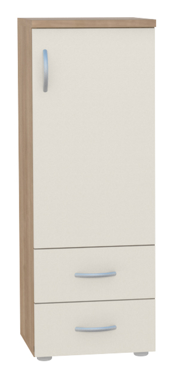 Skříňka na nožkách s dvířky, nastavitelnou policí a šuplíky. Možnost výběru barvy a úchytek viz vzorník. Barvy je možné vzájemně kombinovat dle Vašich představ, požadavek na kombinaci barev je nutné uvést do poznámky v objednávce. Možnost výběru levého nebo pravého provedení. Skříňka má další rozměrové varianty viz varianty zboží. Dodáváno ve smontovaném stavu. Zakázková výroba.