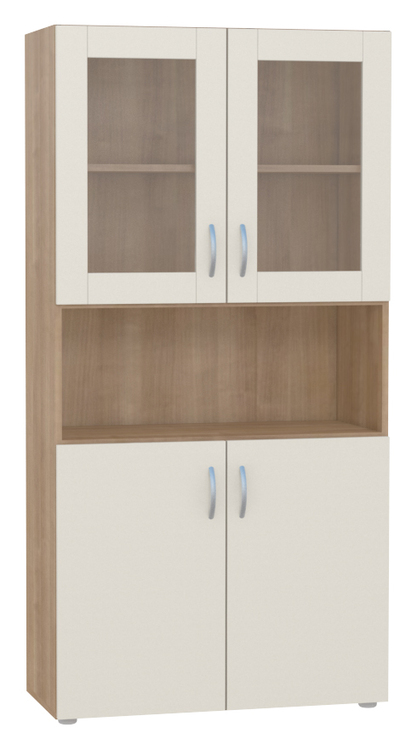 Skříňka na nožkách s dvířky, prosklenými dvířky a nastavitelnou policí. Možnost výběru barvy, rámu, úchytek a skla viz vzorník. Barvy je možné vzájemně kombinovat dle Vašich představ, požadavek na kombinaci barev je nutné uvést do poznámky v objednávce. Dodáváno ve smontovaném stavu. Zakázková výroba.