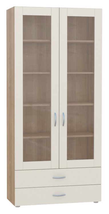 Skříňka na nožkách s prosklenými dvířky, nastavitelnou policí a šuplíky. Možnost výběru barvy, rámu, úchytek a skla viz vzorník. Barvy je možné vzájemně kombinovat dle Vašich představ, požadavek na kombinaci barev je nutné uvést do poznámky v objednávce. Skříňka má další rozměrové varianty viz varianty zboží. Dodáváno ve smontovaném stavu. Zakázková výroba.