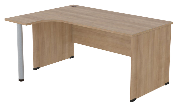 Kancelářský rohový stůl s kovovou podnoží. Stůl je opatřen rektifikačními nožkami. Možnost výběru barvy ( viz vzorník ). Možnost výběru orientace stolu pravá nebo levá. Vyobrazeno v levém provedení.Ke stolu lze doobjednat výsuv na klávesnici.