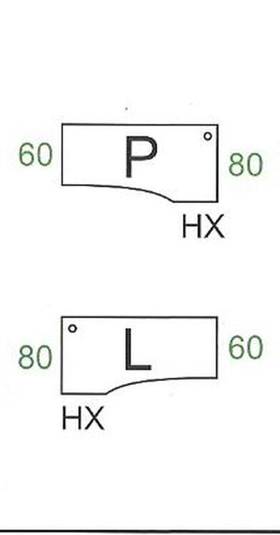 Výběr orientace pravé nebo levé provedení. Stůl je vyobrazen v pravém provedení.