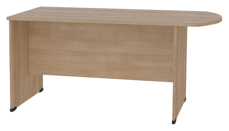 Jednací kancelářský stůl s půlkruhovým prodloužením – možnost umístění židliček ze tří stran stolu. Stůl je opatřen rektifikačními nožkami. Možnost výběru barvy viz vzorník. Stůl má další rozměrové varianty viz varianty zboží. Dodáváno ve smontovaném stavu. Zakázková výroba.