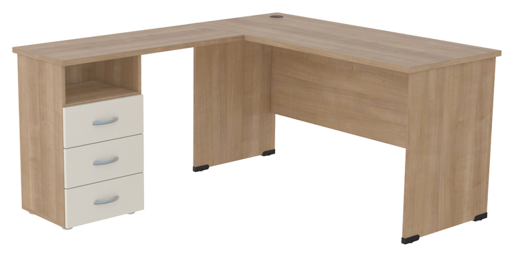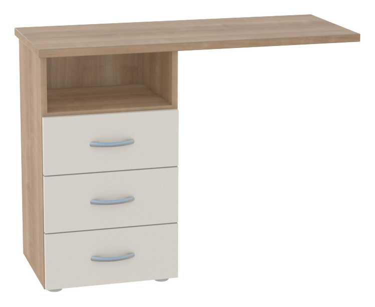 Přístavná komoda s deskou ke kancelářským stolům na nožkách se šuplíky a nikou.Komoda má pohledová (pevná) záda a proto je vhodná i do prostoru. K připevnění desky doporučujeme objednat spojovací kování EKP.