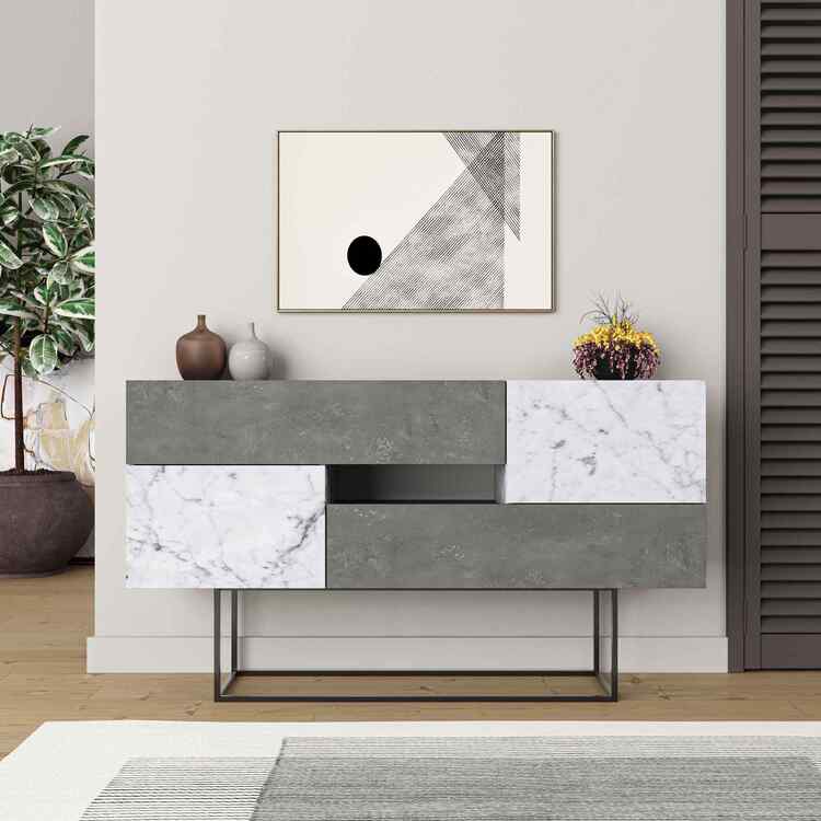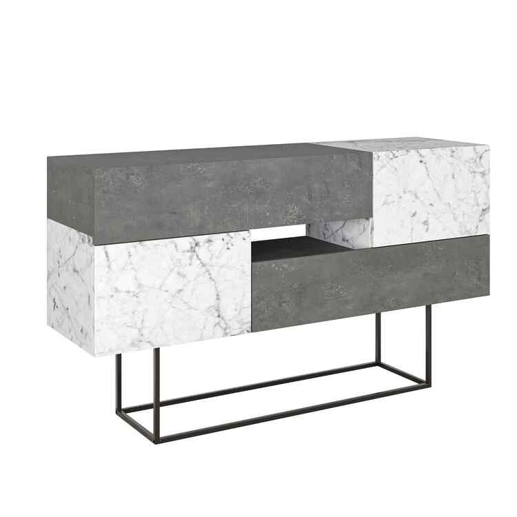 ELARA, konzolový stolek, retro šedá / bílý Carrara