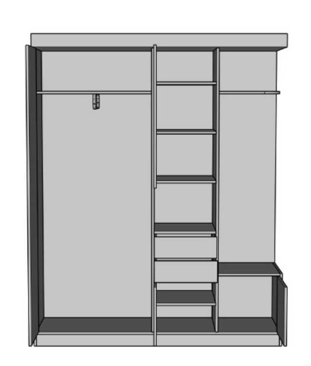nabízí dostatek úložného prostoru díky 2 prostorným zásuvkám, četným policím a šatní skříni, která umožňuje přehledné uspořádání oblečení, kabátů či doplňků.