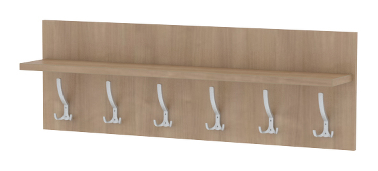 Závěsný panel se 6-ti věšáky a odkládací policí. V ceně panelu je základní věšák SV2 sat. Možnost výběru barvy a věšáků. Panel má další rozměrové varianty viz varianty zboží. Dodáváno ve smontovaném stavu. Zakázková výroba.