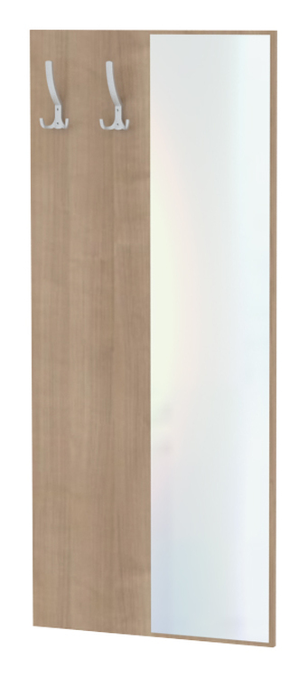 Závěsný panel se 2 věšáky a zrcadlem. V ceně je základní věšák SV2 sat. U panelu je možno zvolit levou nebo pravou orientaci, řídí se podle umístnění věšáků ( věšáky vpravo z čelního pohledu = pravá varianta). Na obrázku vyobrazena levá varianta. Nutné uvést do poznámky u objednávky. Možnost výběru barvy a věšáků. Panel má další rozměrové varianty viz varianty zboží. Dodáváno ve smontovaném stavu. Zakázková výroba.