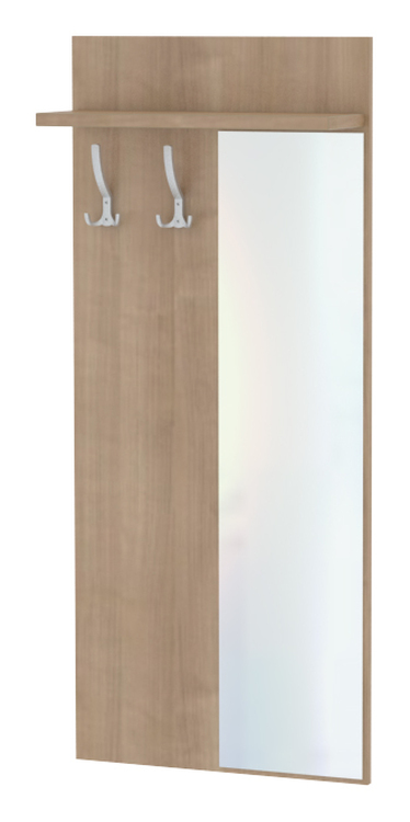 Závěsný panel se 2 věšáky, odkládací policí a zrcadlem. V ceně je základní věšák SV2 sat. U panelu je možno zvolit levou nebo pravou variantu, řídí se podle umístnění věšáků ( věšáky vpravo z čelního pohledu = pravá varianta). Na obrázku vyobrazena levá varianta. Nutné uvést do poznámky u objednávky. Možnost výběru barvy a věšáků. Panel má další rozměrové varianty viz varianty zboží. Dodáváno ve smontovaném stavu. Zakázková výroba.