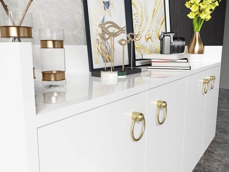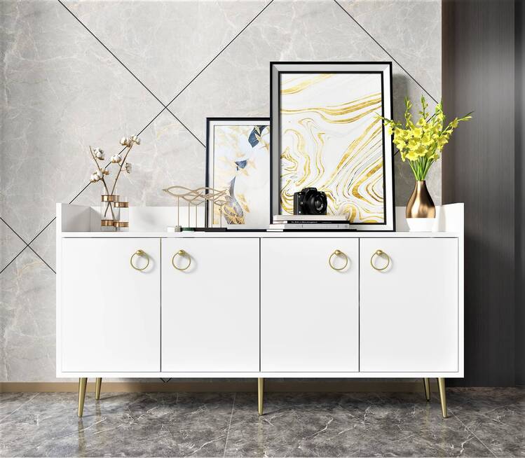 Skříňka je ideálním doplňkem pro moderní obývací pokoj, který kombinuje praktické úložné prostory s elegantním designem. Díky čtyřem plným dvířkům a odkládací polici nabízí dostatek místa pro všechny vaše potřeby, ať už jde o knihy, dekorace nebo další předměty.