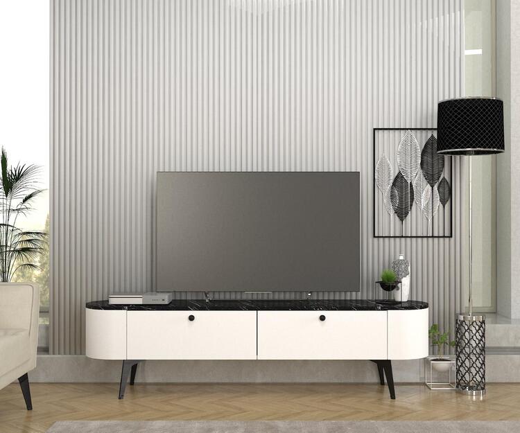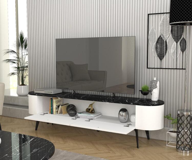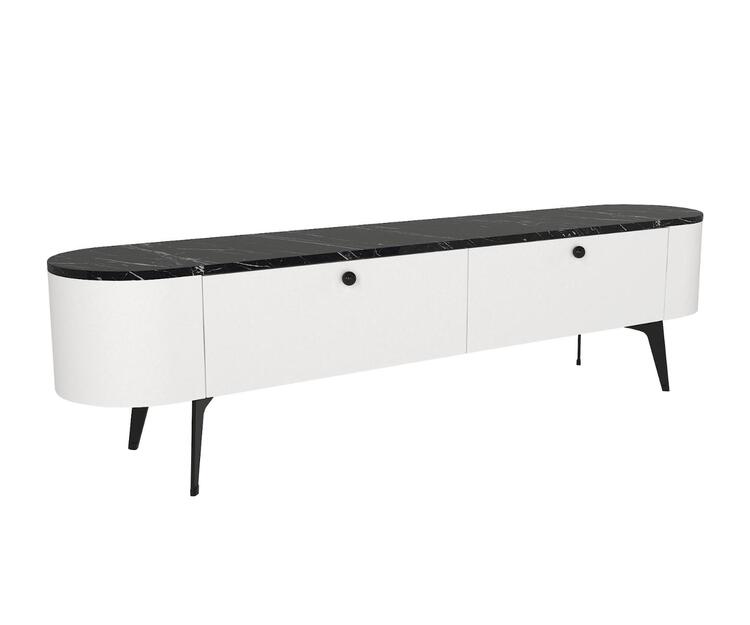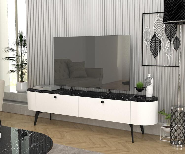 TV stolekje skvělou volbou pro každého, kdo hledá funkční a estetické řešení pro svůj obývací pokoj. Vyrobený z kvalitního LTD materiálu s tloušťkou 18 mm, zajišťuje pevnost a dlouhou životnost. Kombinace bílé barvy a mramorového vzhledu dodává stolku moderní a luxusní vzhled, který se hodí do jakéhokoli interiéru.