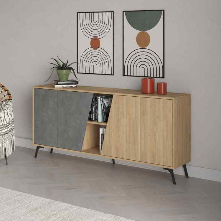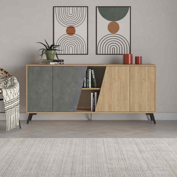 Seznamte se s – konzolovým stolkem, který přináší kombinaci tradičního dubu a moderní retro šedé. Ideální doplněk pro váš obývací pokoj či předsíň, kde vynikne jeho elegantní design.