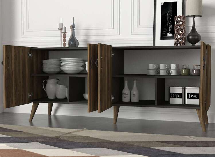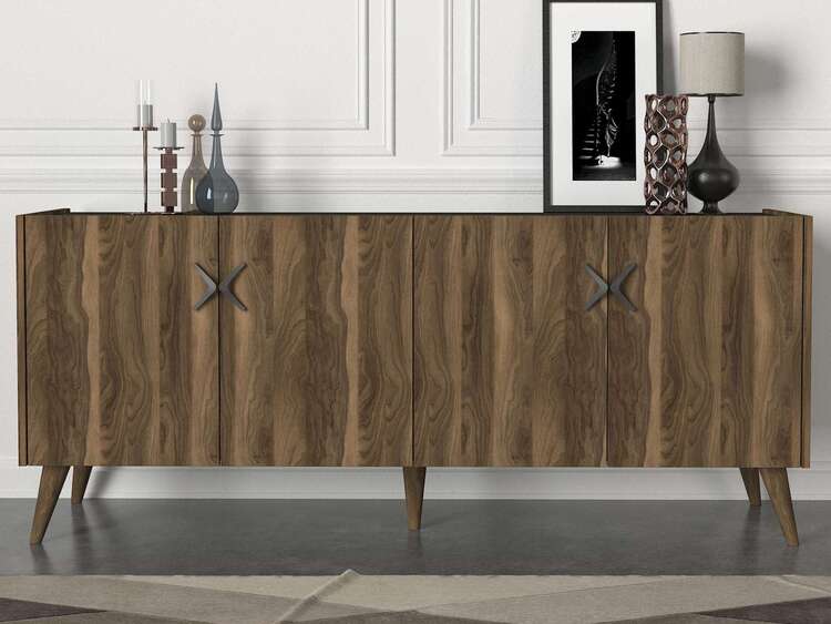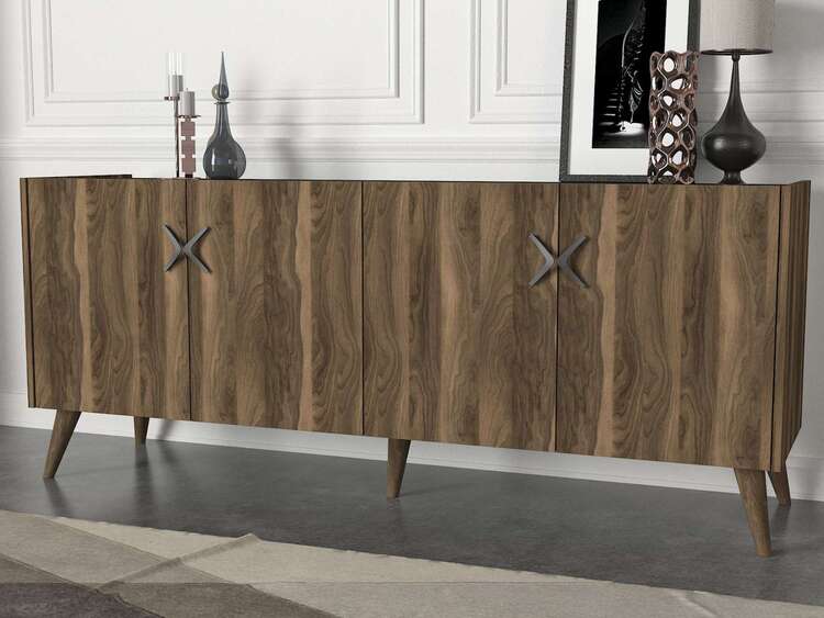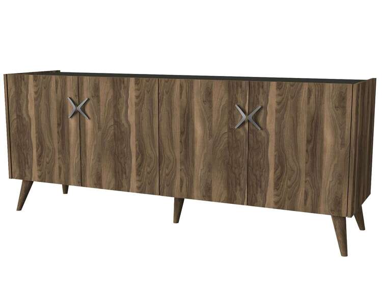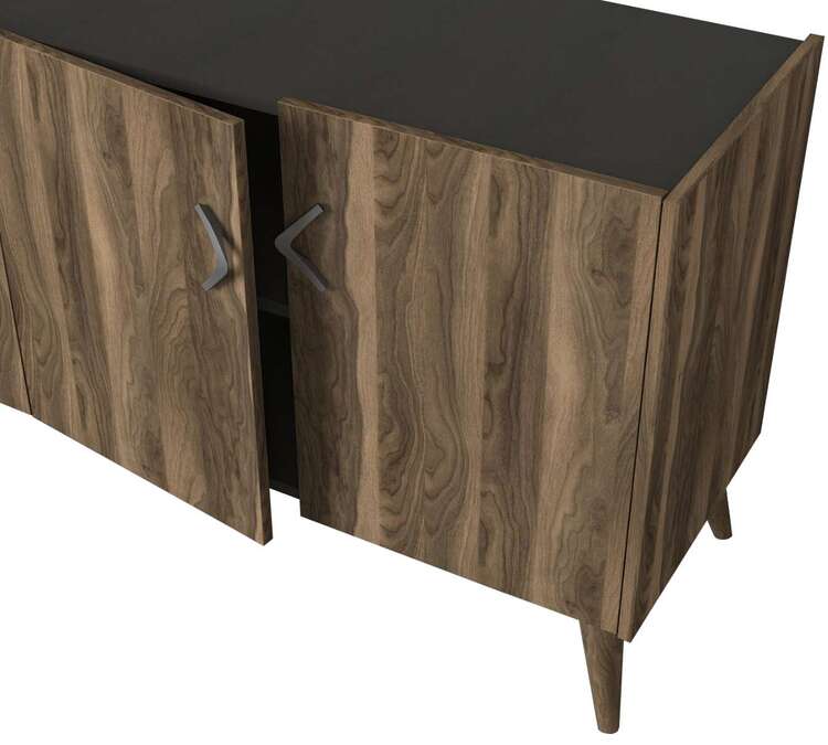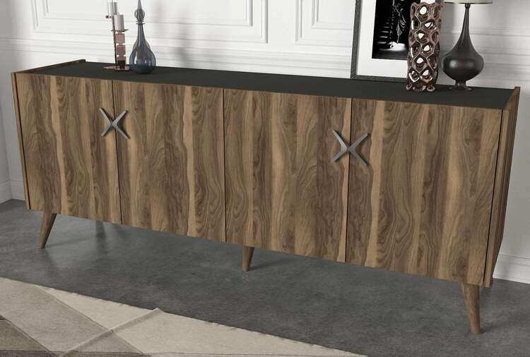 Komoda je vyrobena z kvalitního LTD materiálu s tloušťkou 18 mm, což zajišťuje její pevnost a dlouhou životnost. Elegantní kombinace ořechového dekoru a antracitové barvy dodává komodě moderní a sofistikovaný vzhled, který se hodí do jakéhokoliv interiéru. Komoda je vybavena čtyřmi dvířky, které poskytují dostatek úložného prostoru pro vaše potřeby.