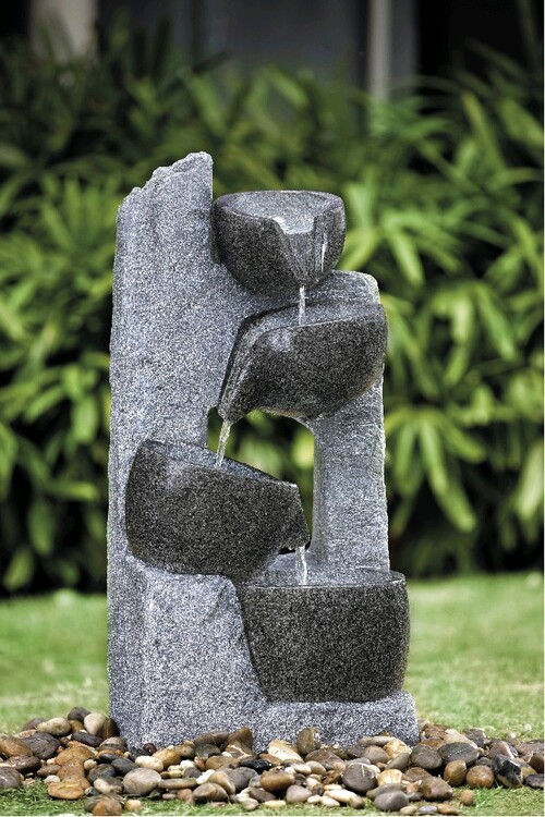 fontána s přelévajícími se kamennými miskami s LED osvětlením bude