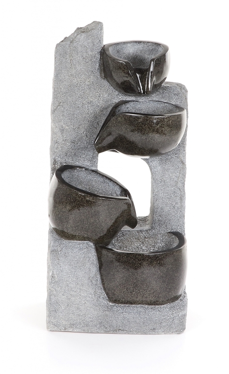 fontána je vybavena kvalitní a velmi tichou vodní pumpou. Voda stéká po