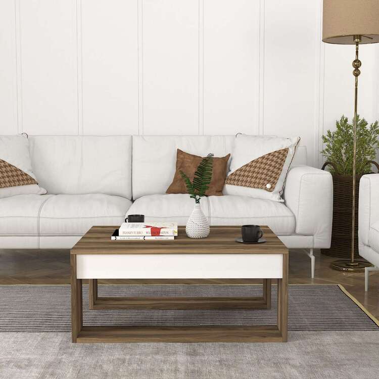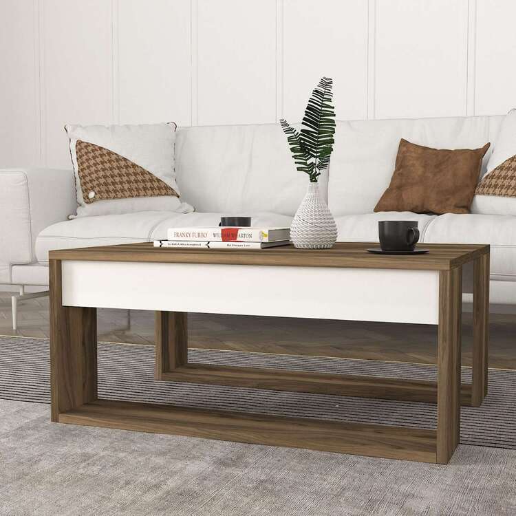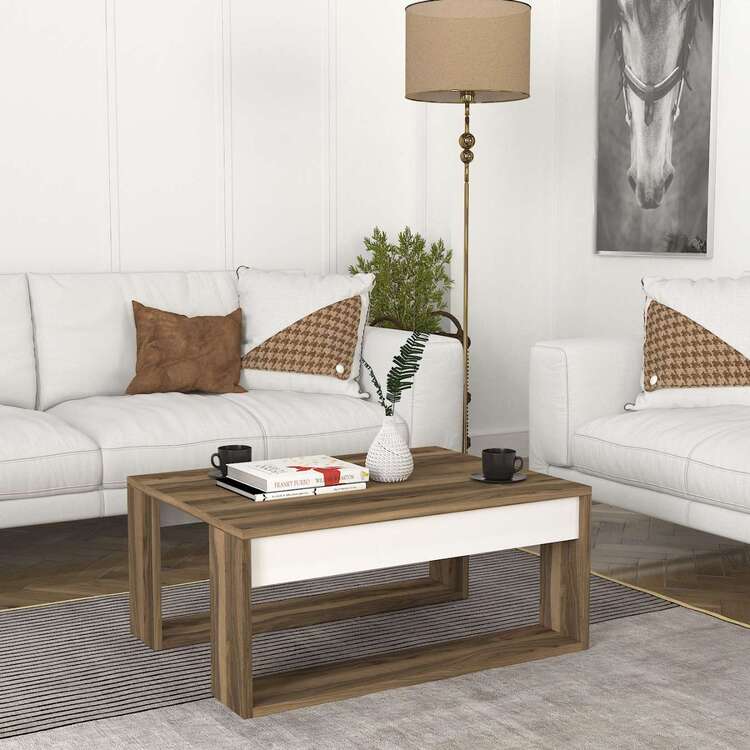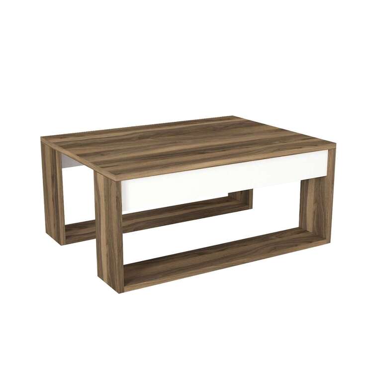 Stolek nabízí dostatek prostoru pro vaše nápoje, časopisy nebo dekorace. Jeho obdélníkový tvar a kombinace bílé a ořechové barvy dodávají stolku moderní a stylový vzhled, který se hodí do každého obývacího pokoje.