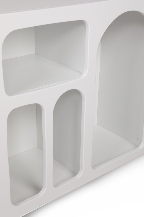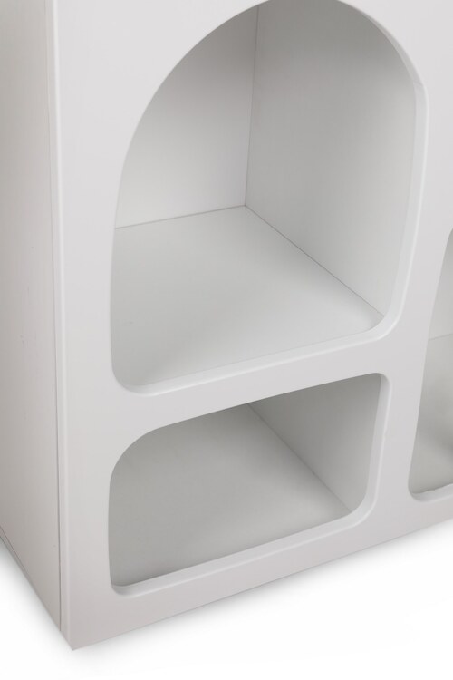 Knihovna je navržena tak, aby spojovala estetiku a praktičnost. Nabízí dostatek úložného prostoru pro vaše oblíbené knihy, dekorace či další drobnosti. Díky elegantní bílé barvě se snadno sladí s vaším interiérem.