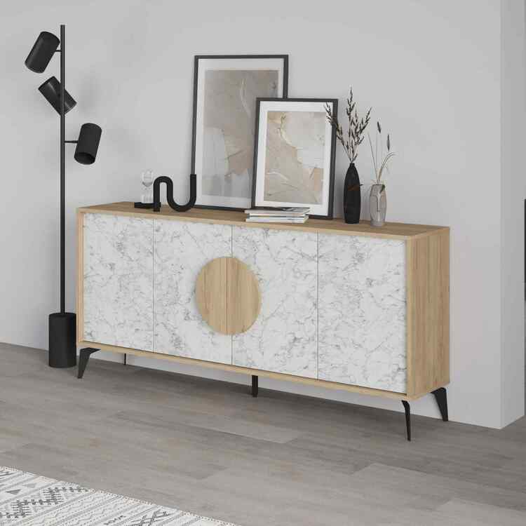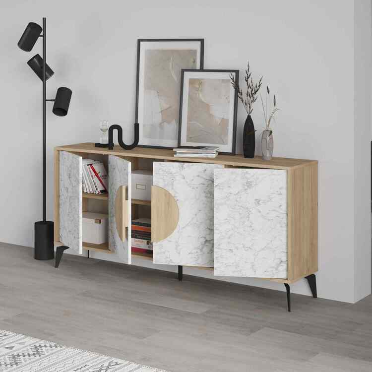 GALATEA 180, konzolový stolek, dub / bílý Carrara
