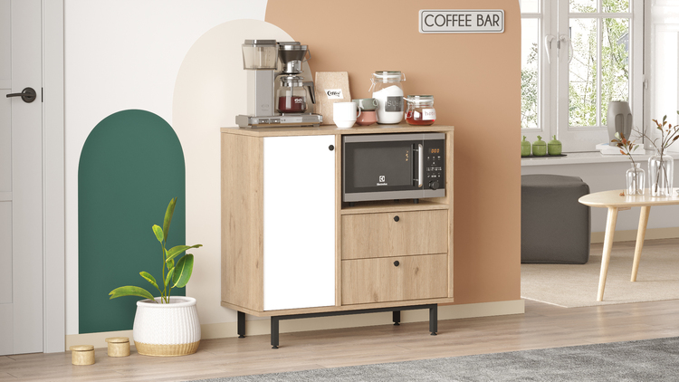 poskytuje kombinaci funkčnosti a stylu, díky čemuž nejen uspořádá vaši kuchyni, ale zároveň ji ozdobí. Je navržena tak, aby splnila požadavky na praktické uložení mikrovlnky i dalších kuchyňských potřeb.