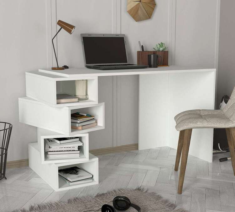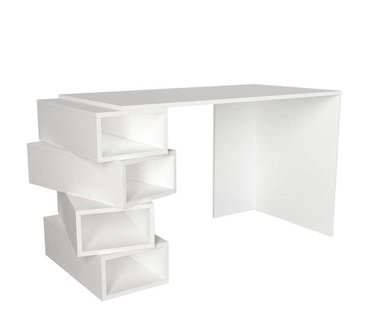 Písací stůl je vyroben z kvalitního LTD materiálu s tloušťkou 18 mm, což zajišťuje jeho pevnost a dlouhou životnost. Elegantní bílá barva dodává stolu moderní a čistý vzhled, který se hodí do jakéhokoliv interiéru. Stůl je vybaven praktickým regálkem, který poskytuje dostatek úložného prostoru pro vaše pracovní potřeby a pomůcky.