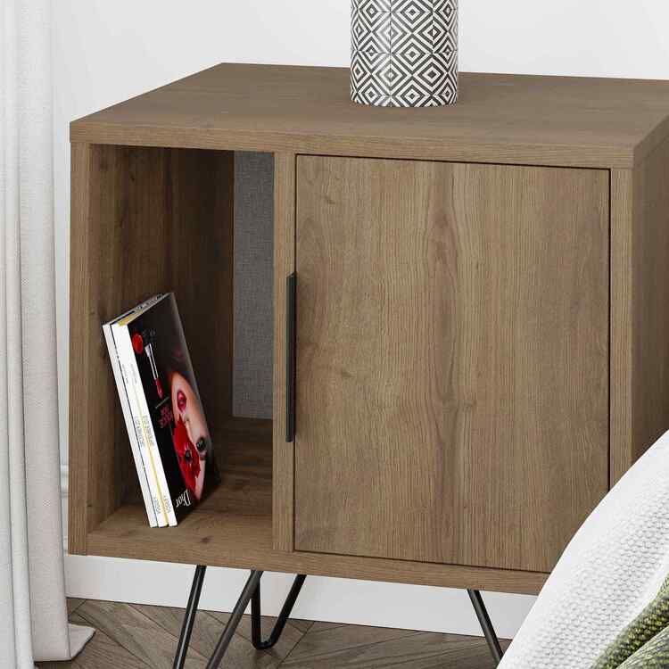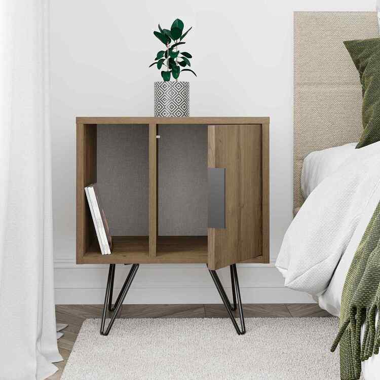 Noční stolek: Industriální elegance v odstínu ořech Hit