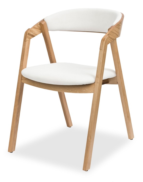 Židle Guru z dubového masivu s čalouněným sedákem a opěrkou. Oproti variantě eko má tento model lepší ergonomii díky větší šířce a hloubce sedu. Je lépe zpracovaná v detailech, nemá vidět kolíky a má zaoblenou vrchní část nohy, která vás při sedu nebude tlačit.