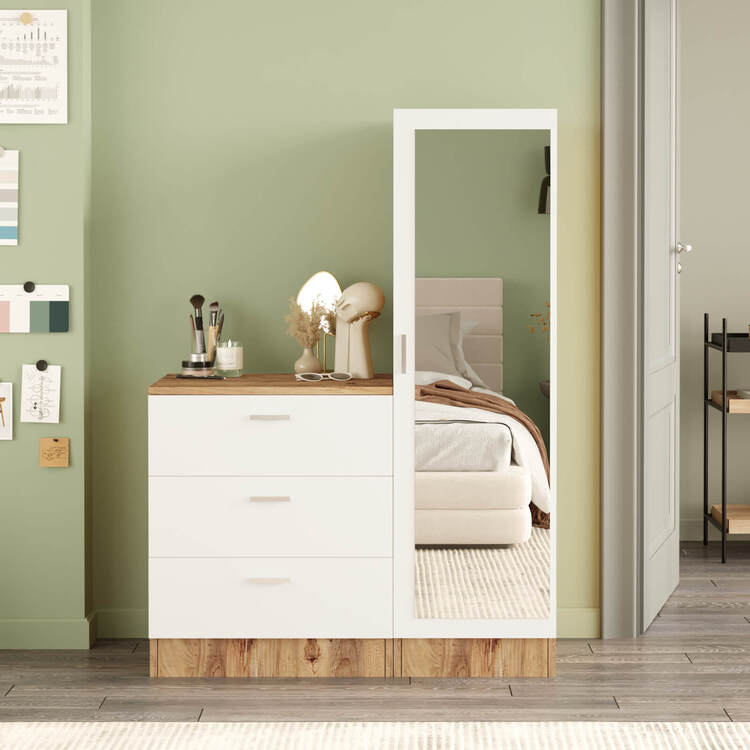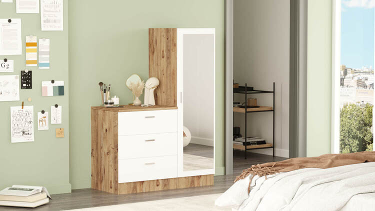 Vybavena zrcadlem a 3 zásuvkami, poskytuje dostatek úložného prostoru