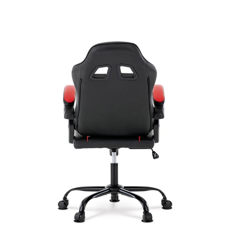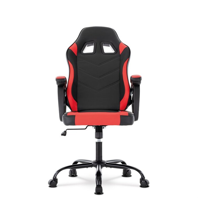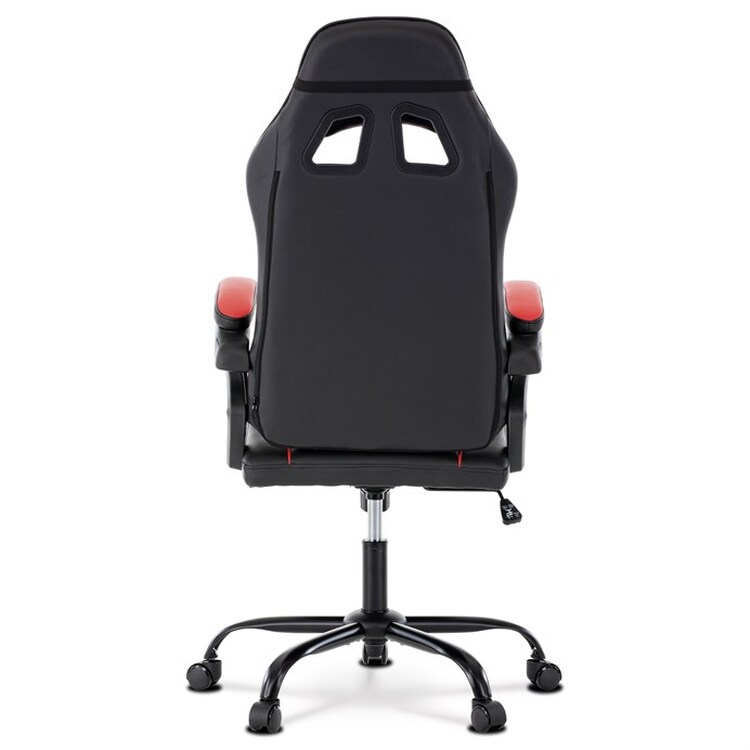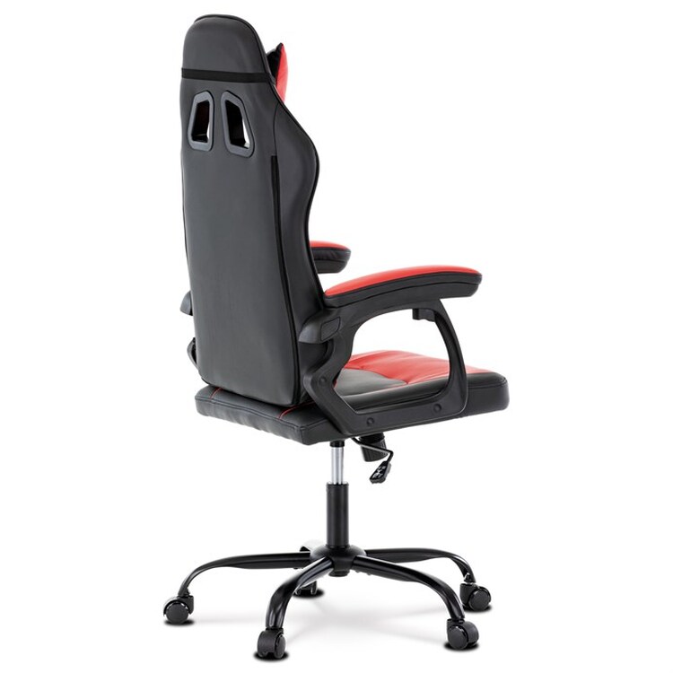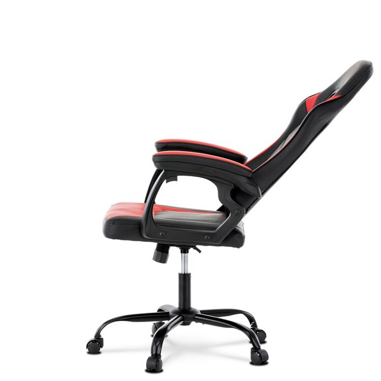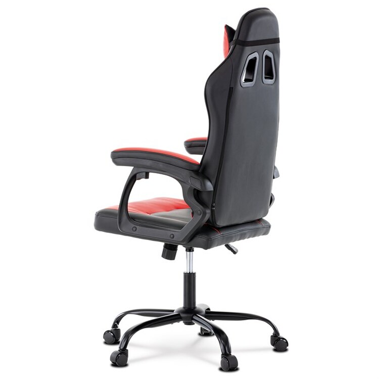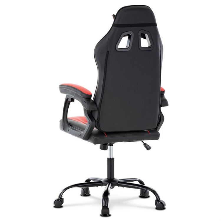 Herní křeslo v kombinaci červené a černé ekokůže nabízí ergonomicky tvarovaný opěrák s možností polohování až do úhlu 135°, což umožňuje přizpůsobit pozici pro maximální pohodlí během dlouhých herních sezení. Výškově nastavitelný sedák a pevné čalouněné područky zajišťují individuální komfort a stabilní oporu. Křeslo je vybaveno houpacím mechanismem s polohovou aretací, který umožňuje plynulé naklápění a fixaci v požadované poloze. Kovový kříž poskytuje pevnou a stabilní základnu, zatímco vyměkčená vrchní část sedáku a bederní opěrka podporují správné držení těla. Celková konstrukce je navržena pro dlouhou životnost a snadnou údržbu.