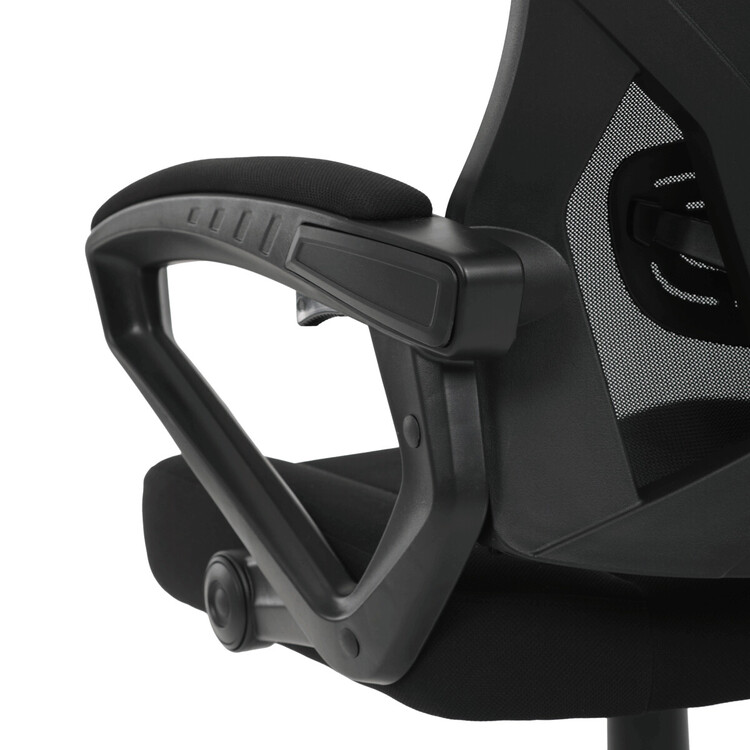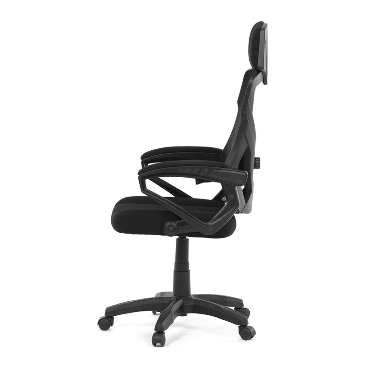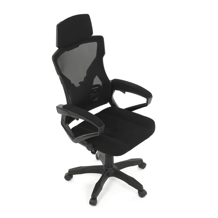 Herní křeslo s polohovacím opěrákem nabízí komfortní sezení díky černé síťovině, která zajišťuje optimální prodyšnost během dlouhých herních či pracovních sezení. Pevný plastový kříž poskytuje stabilní základnu, zatímco čalouněné pevné područky přispívají k pohodlí paží. Opěrák je vybaven nastavitelným sklonem a integrovanou bederní opěrkou, která podporuje správné držení těla. Výškově nastavitelná mechanika umožňuje snadné přizpůsobení výšky sedáku individuálním potřebám uživatele. Křeslo je vhodné pro dlouhodobé používání s důrazem na ergonomii a stabilitu.