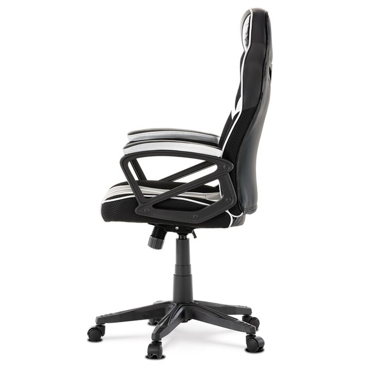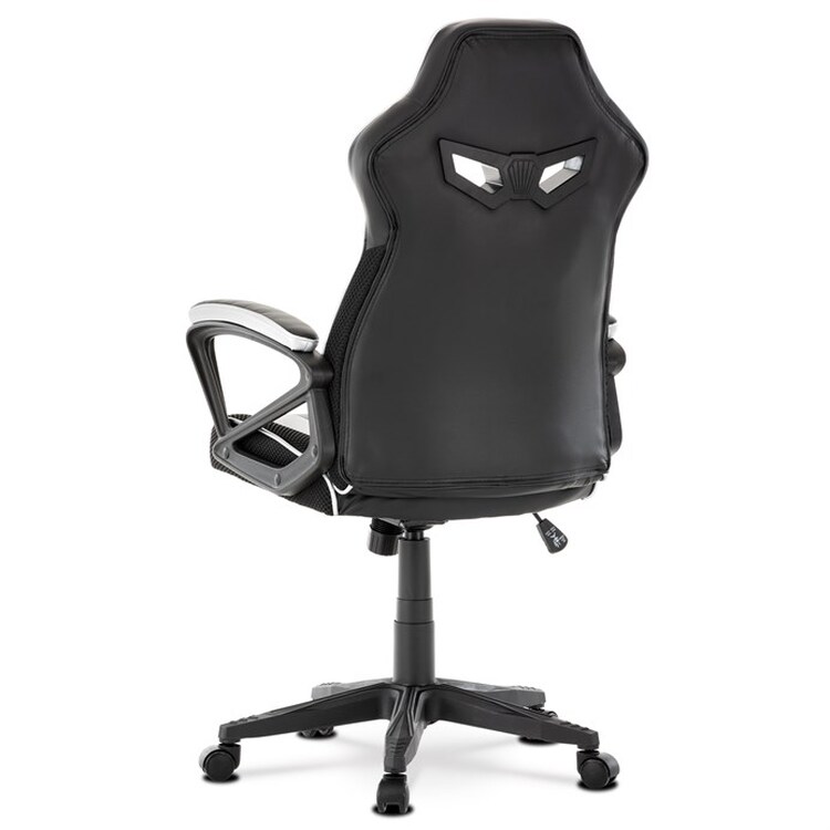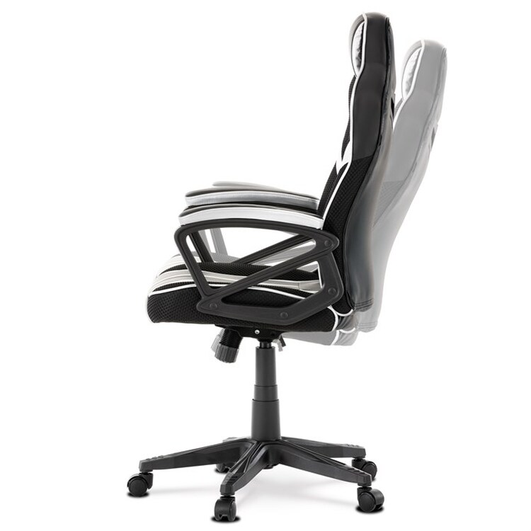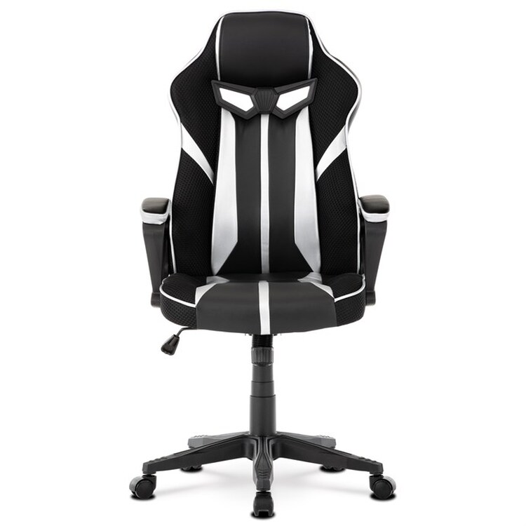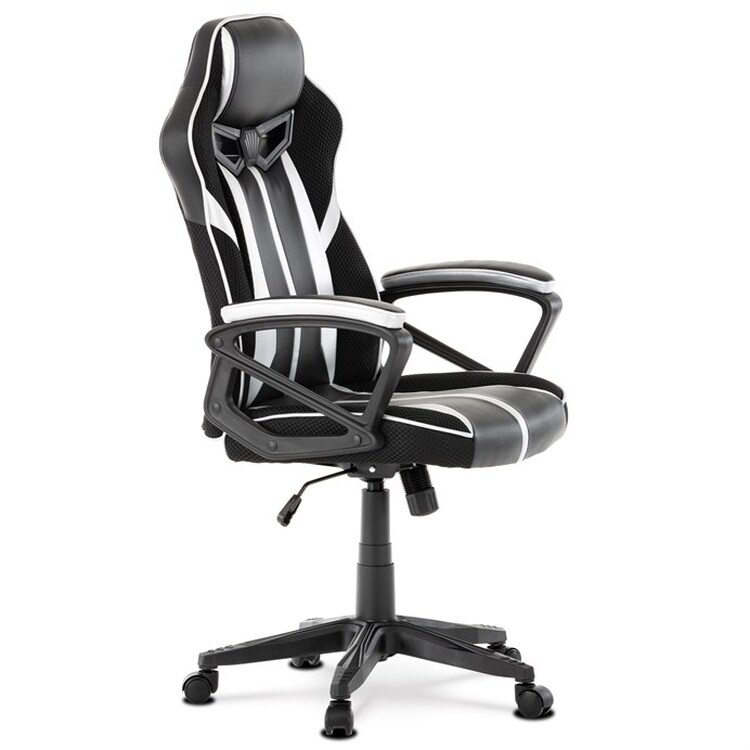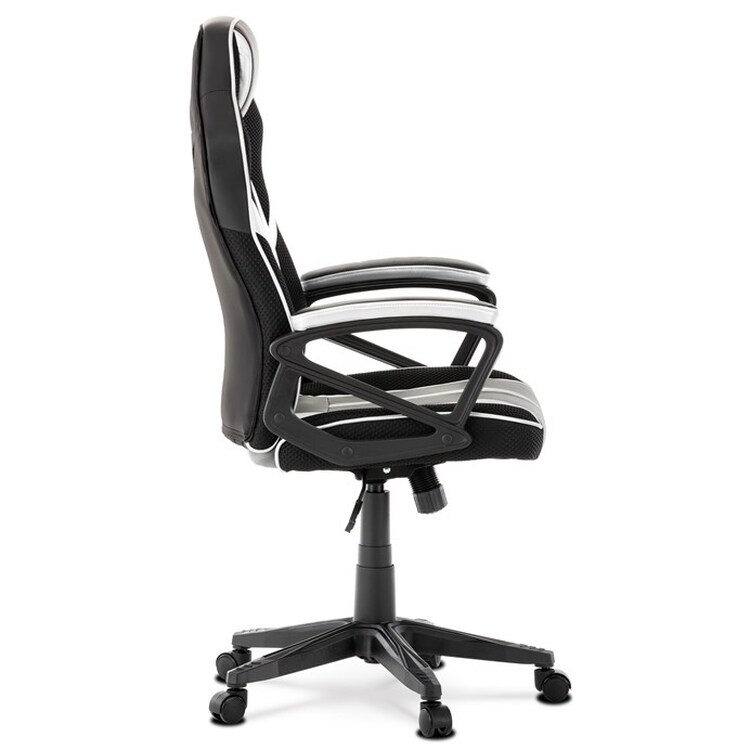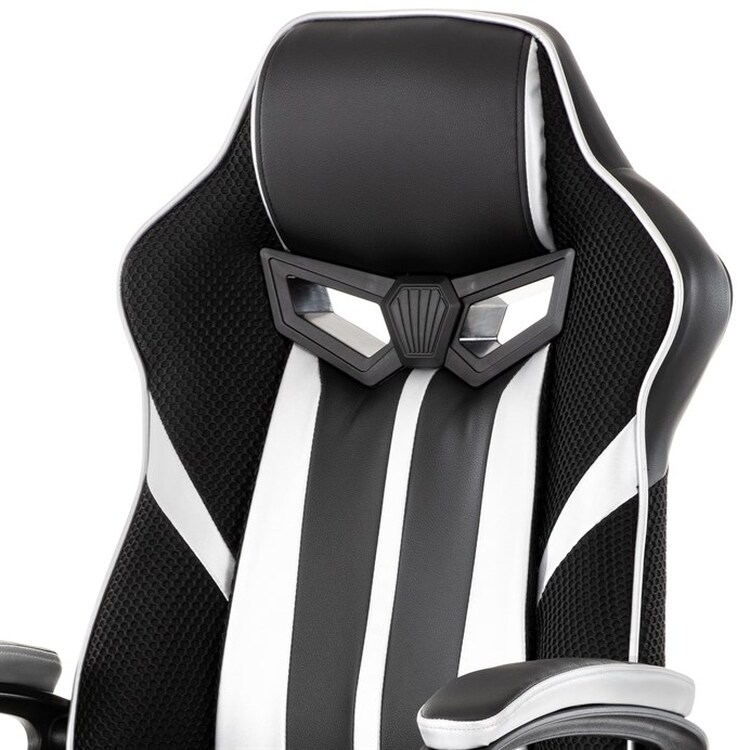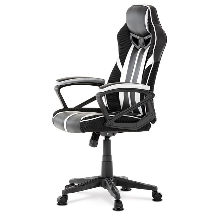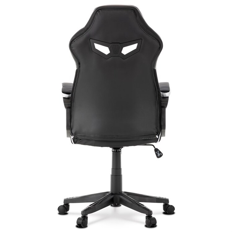 Herní křeslo s potahem z kombinace černé a stříbrné ekokůže a prodyšné černé látky MESH nabízí ergonomicky tvarované opěradlo a vysoké polstrování sedáku pro dlouhodobý komfort při hraní i práci. Odklápěcí čalouněné područky zajišťují pohodlnou oporu paží a zároveň možnost snadného přizpůsobení prostoru. Křeslo je vybaveno houpacím mechanismem, který umožňuje mírné naklánění pro uvolnění svalstva, a plastovým křížem s pěti kolečky pro stabilitu a snadnou mobilitu. Celkové provedení je navrženo pro dlouhou životnost a snadnou údržbu, přičemž absence bederní opěrky a posuvného sedáku zjednodušuje design a ovládání. Nosnost a rozměry nejsou specifikovány, ale konstrukce odpovídá standardům herních křesel v této kategorii.
